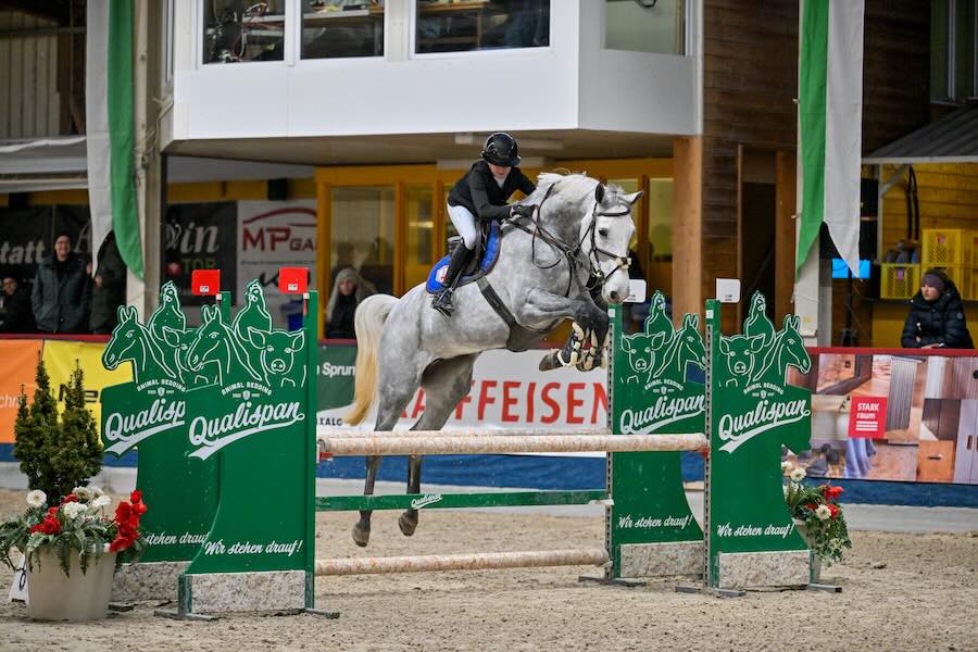 Alessia bekommt verdankenswerterweise die Gelegenheit, die im Besitz der Septem Vitae AG stehende Nachwuchsstute Onilithya Keizersberg an einem Concours zu reiten und platzierte sich im 100 auf Anhieb unter den Topo Ten auf dem 9. Rang.